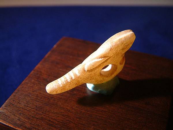 眼下桯具對鑽一孔,似為紅山C型龍、豬龍之遺緒。角下再對鑽一小孔,以供配繫。