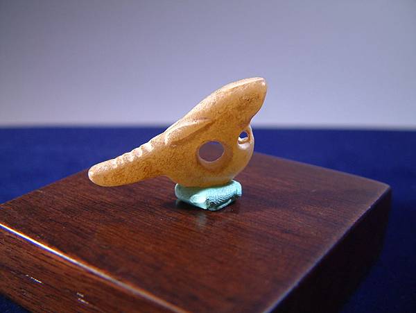 玉質同紅山文化透閃石類之陽起石,色黃綠。目前出土及相關資料似未見此器型,但風格可斷為紅山文化,各位格友是否贊成?