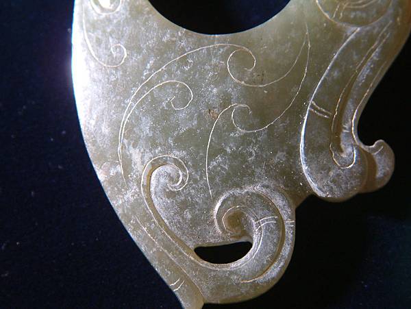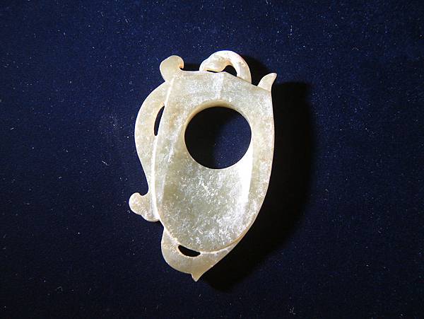 背面韘形雖有打磨出斜溝等稜線,但無紋飾。加上鳳頭勾轉型成的細孔、無紋飾背面風化較重,這兩個元素,讓wake猜想,此韘形珮(或稱雞心珮)可能是女子掛在胸前貼身的佩掛玉器。至於雞心珮在漢代是何種寓意?佩帶者希望藉雞心珮能帶來何種機運或能力?可能需要各位格友一起發掘這漢代特有的玉器,其發展的來龍去脈了。