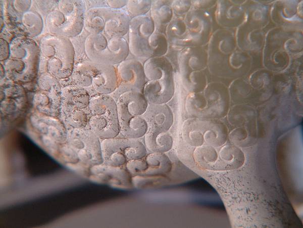 本器滿飾飽滿螭龍紋的手法,是斷為春秋玉器的原因之一。再來以犀牛的外型作器,似乎是戰國以前才有的器型,或許是戰國以後,犀牛已經在中原消失了。這一對犀牛,不論玉質、造型、工藝技巧均精美絕倫,為不可多得的精品,市面上亦無其他同類玉器出現過。此對犀牛是在1997年收藏的,各位格友猜猜,這對犀牛wake是花了多少錢購得的?