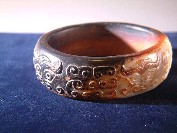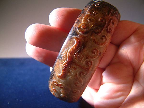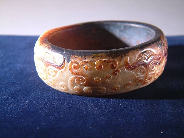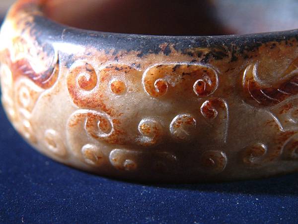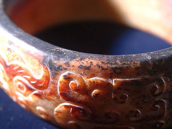 有經驗的格友見玉器浮凸處有此自然的紅沁,大概即知此為前主貼身寶愛之物,經年累月盤摩,且入土久遠,方能有如此沁色,後仿是作不出來的。