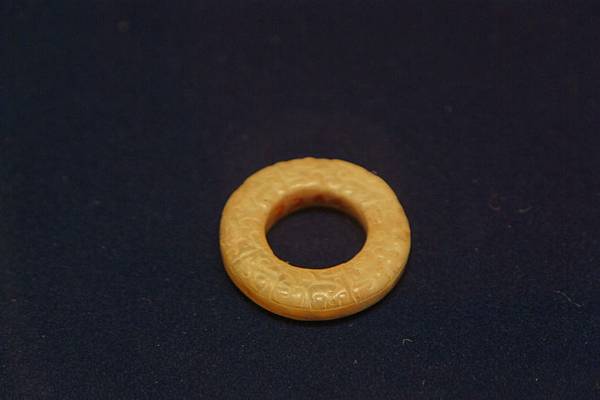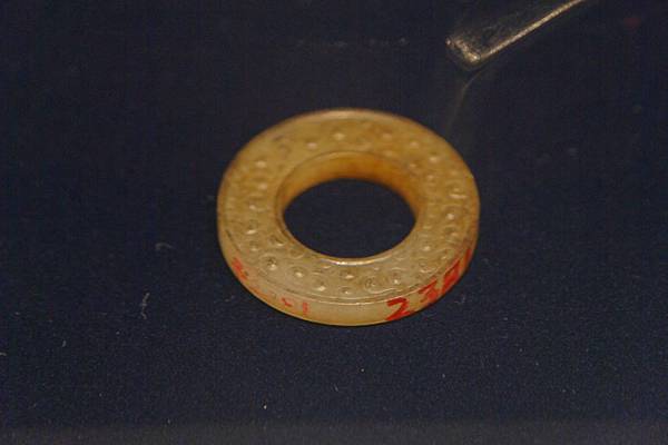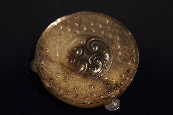 今天借花獻佛,把一些拍得較清楚的展品po給眾格友欣賞。由展品的表面可以看出,出土古玉並非一定有包漿的,就算有的展品表面光亮,但陰線或凹陷處卻毫無光澤,顯然包漿的形成應該不是人為的,wake還是認為包漿可能是包覆的絲綢質變後附著在玉器表面而型成的。而陰線或凹陷處可能因為硃砂或其他物質的阻擋,讓絲綢沒有直接貼附在玉器表面。
