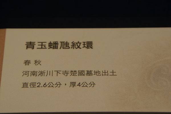 為一的遺憾是現場沒注意打光,所有古玉同好都知道,觀賞古玉一定要有光線打在古玉上,我們藉著反光才能清楚欣賞到古玉表面上的紋飾與質變,但展方居然完全沒有注意到這麼重要的觀賞條件,遺憾吶!