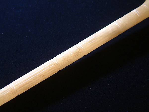 第一、四、六、八節琢變形雲紋;第二、三節琢勾紋,勾內側以斜刀刻出主體勾紋,勾外側以砣具刻出細陰線強化其紋飾效果。第五、七節則琢縱向弦紋。