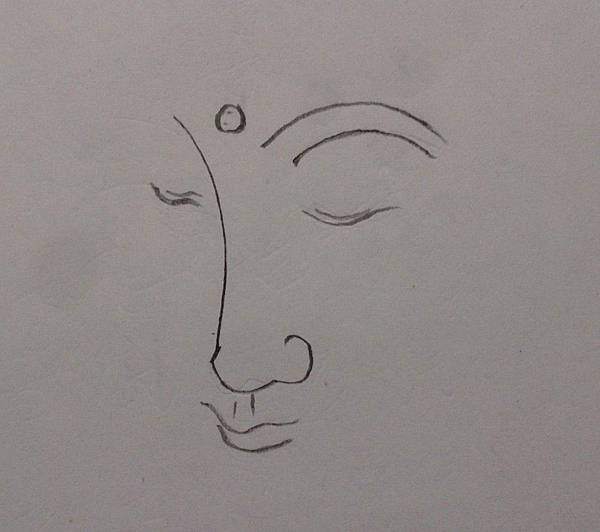 此圍為左上角度的簡單素描,寂靜安定,以自身無上力量普度眾生,使無所畏憂,所求皆遂。