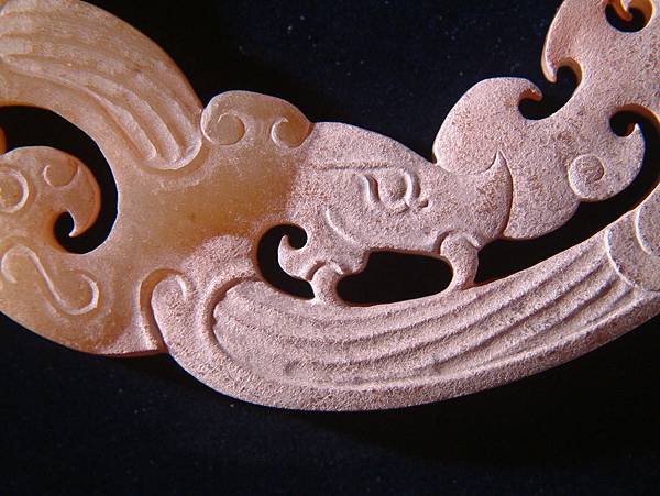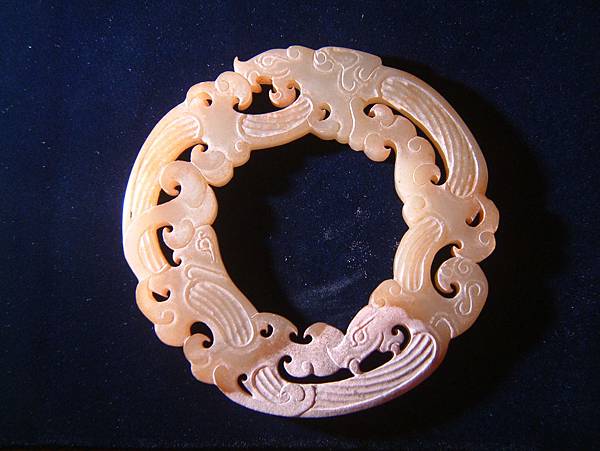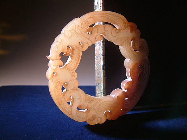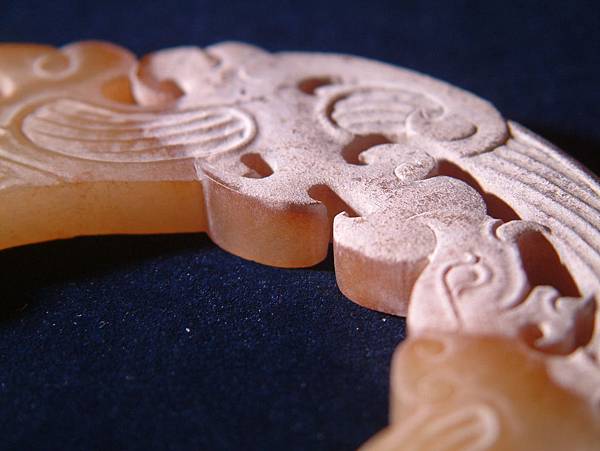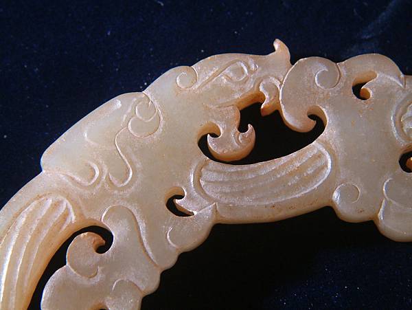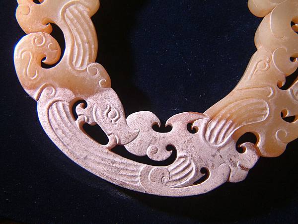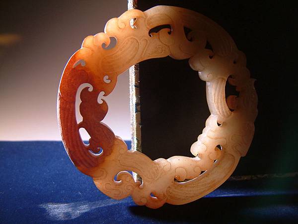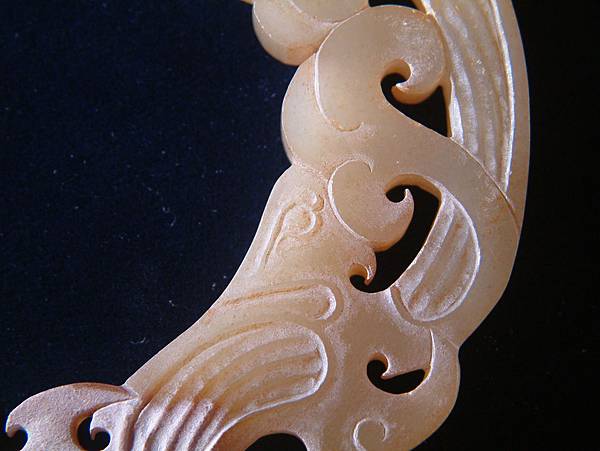所以,此件雖有偽古疑問,但做工精美,尤其絞繩紋是非常高難度的紋飾,再加上玉質甚佳,硬、韌度均高的情況下,更難施做高難度工藝,為何偽作者要耗如此高的成本來做此玉瑗?