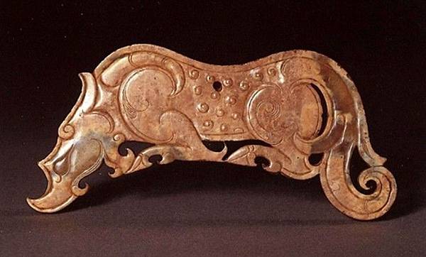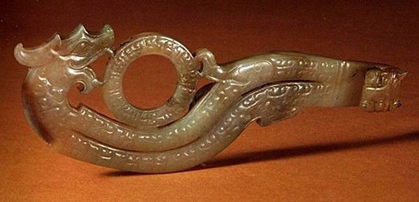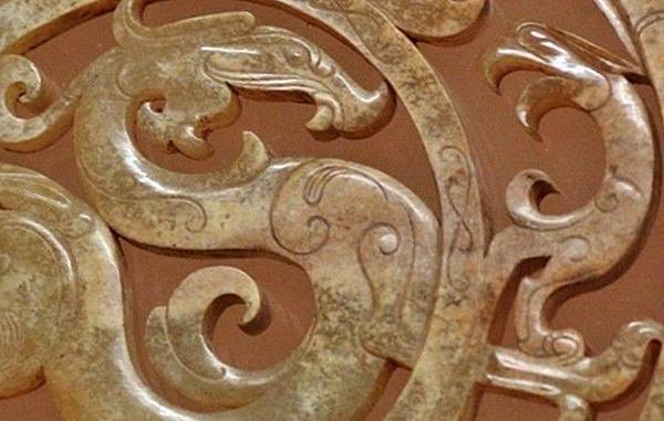 當wake繼續觀察這「斧形下巴」、「張口露牙」的玉器特徵時,發現全中國戰國中、後期玉器,幾乎都沒有此種手法,唯有安徽省長豐縣出土的戰國晚期楊公2號墓精美玉器才有此些特徵,那些龍頭的獠牙可雕琢得尖圓有力,森森嚇人。