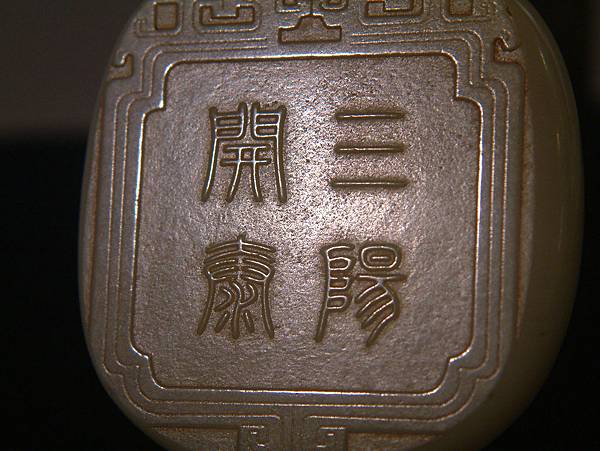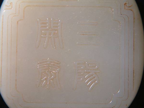 這篆體讓人覺得漢字之美啊!仔細觀察玉牌的字體結體和筆劃間的地子打磨,很容易判斷出玉師傅的功力。