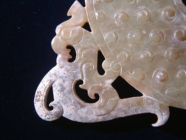 西漢南越王趙眛墓曾出土一「玉雙鳳臥蠶紋璧」,其造型、紋飾幾乎與本件一致,但細細比較,本件仍優於趙眛墓出土的那一件,格友詳細比較璧外的雙鳳即可知道。