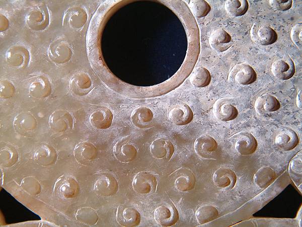 穀紋(雲氣紋)浮凸、緊旋,地子打磨平整。