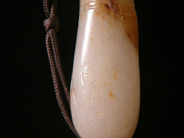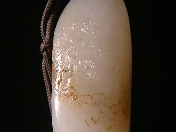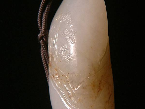 明清時期流行的玉牌,一面有詩,另一面依據詩意雕琢出圖畫,是很好的一種文人清翫,尤其能找到高超的玉師傅來雕琢玉牌,還可收詩、書、畫、玉四種美集於一玉牌。而此種隨形玉珮,用薄意工法、妙思巧雕出詩文意境,更是一絕。本件為此詩意玉珮的代表之一。