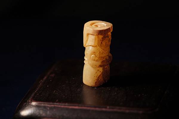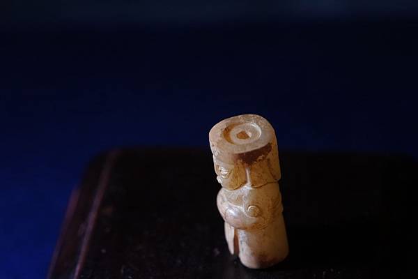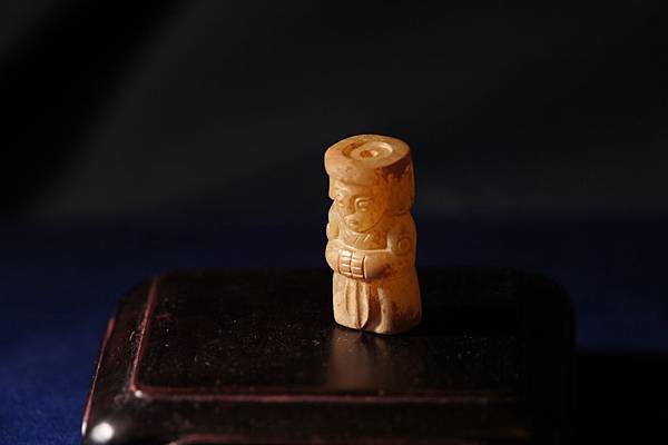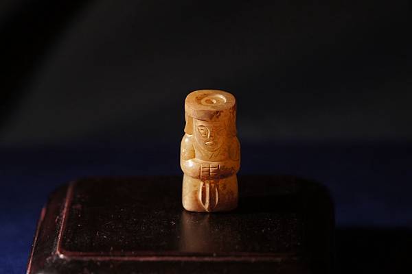 本件玉人是青玉偏黃的精美玉質,雕工精緻,而且幾無紋飾,推測是春秋中期貴族的隨身祖先像獲巫覡像吧?