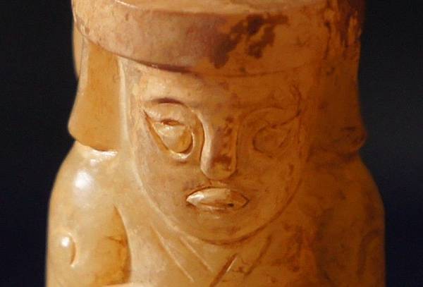 面部工序應是在粗胚上用減地工法,切琢掉器官之外的部分,再精細打磨。只是,這嘴巴……,算了,別議論別人的先祖長相了。不過,如此凸顯嘴部,是否是說玉人正在吟誦著咒語?