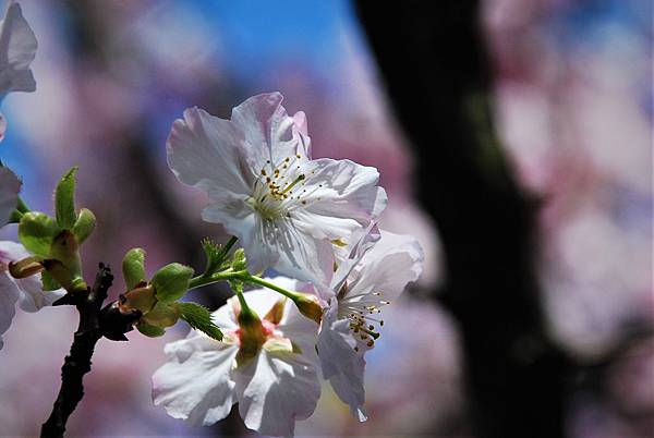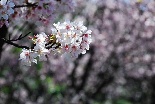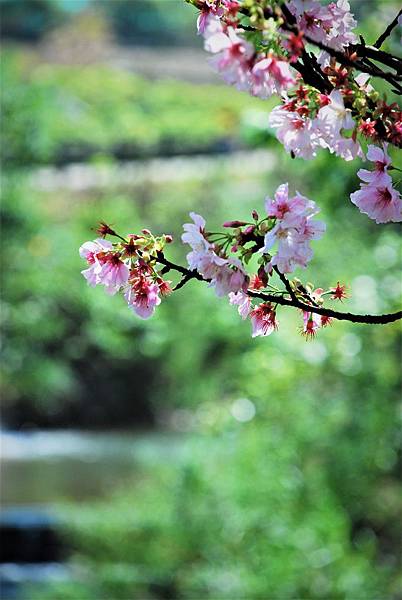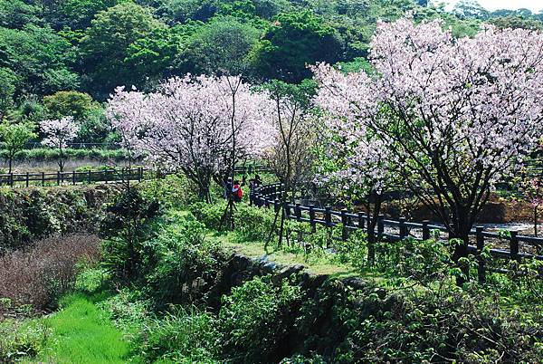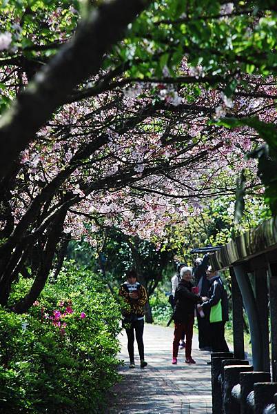 三芝三生步道的櫻花季活動隔天才要開始,我們是想趁人潮前先觀賞,結果發現櫻花在上週已滿開,這週已開始謝了,且只剩下兩道拱橋間的步道還有花。今年的花期起碼提早了一兩周,與去年剛好相反。