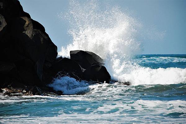 前兩天風和日麗,與好友往北海岸一遊,主要目的是走三生步道和富貴燈塔。過了金山在往石門的中途停車略事休息,眼前閃閃發光的藍色大海,很美。