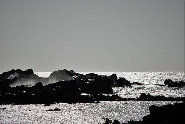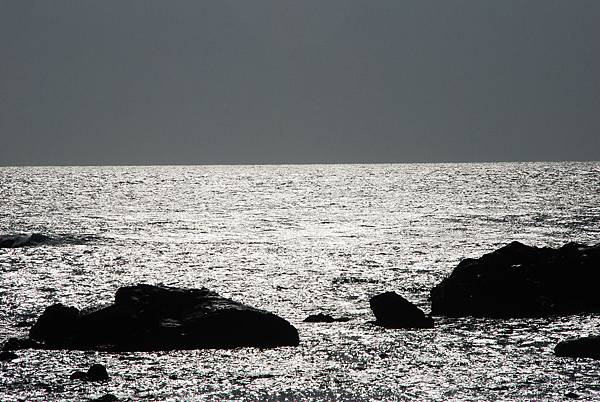 沿途聽說最北端有塊岩石上有 [ 領海基點 ],遂尋找了過去。遠眺西方的海面,一片金黃,比早上來時的北海點點閃光更美。