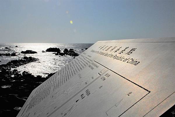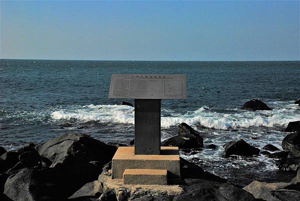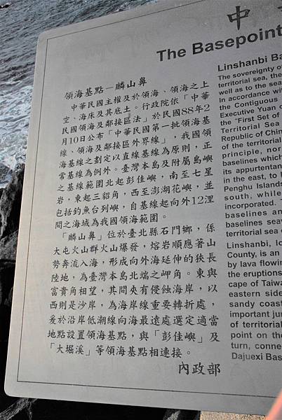 四肢並用地爬上了台灣島第三北端的岩石(第一北是富貴角,第二北是石門洞),領海基點的不銹鋼告示牌出現在眼前。