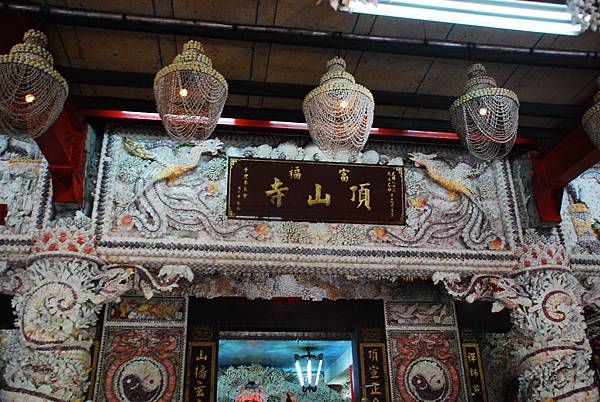 貝殼廟原名是頂山寺,因為其壁面、龍柱均是用珊瑚、貝殼做裝飾的原料而以貝殼廟著稱。頂山寺目前在籌備遷寺,亟需信士的襄助,有緣一遊的朋友,不妨捐些香油錢,幫助濟公早早安頓好新家。