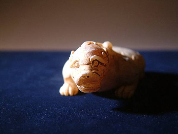 購藏之初,在清潔過水時即脫落一層灰粉,持小油漆刷子輕輕一掃,就成了現在這種灰濛濛的樣子,還真不是普通的難看。可看久了反而有些古拙之美。