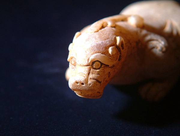 本件天祿雖工、型就料,略顯體寬了些,但威武兇猛的韻味十足,或許是西漢後期到東漢中期間的隨身避邪之物。