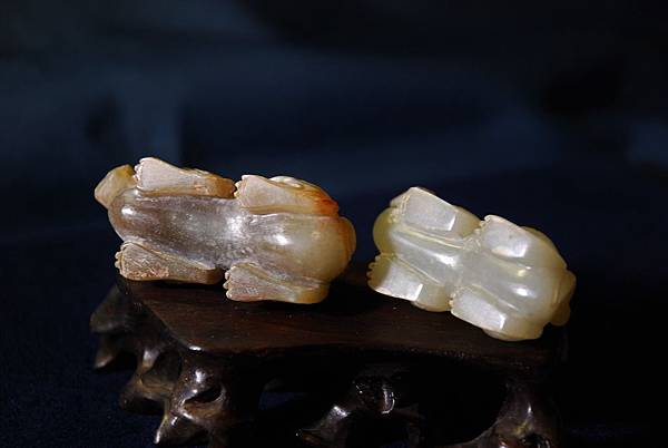 東漢中後期已漸漸不能掌控西域各國,和闐美玉原石自然無法充裕供應皇家王室使用,除了玉質不若西漢,體態做工亦較呆版。另外,凸胸的現象可能是玉師傅捨不得把多餘的玉料切掉,此特徵延續到魏晉南北朝。