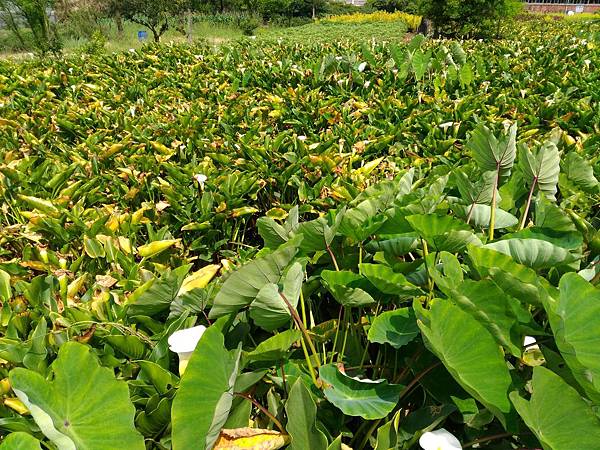 循著蓬萊米故事館和湖田國小中間的小路走進去左轉不久,入眼大片的海芋園。可海芋疏疏落落,已過了花期。