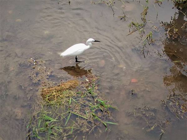 在水圳中捕時的白鷺鷥,照相時看見牠一分鐘之內以吃了七八條小魚,動作非常精準迅捷。