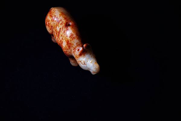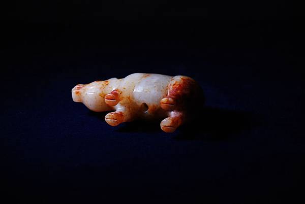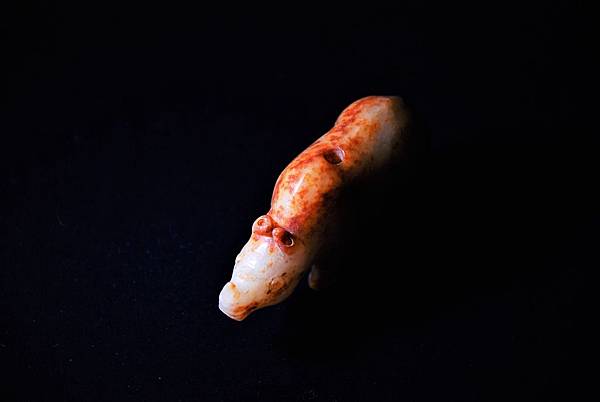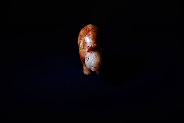 本件犀牛是考慮犀牛在中土最後出現身影的時間,且無雕琢紋飾,工藝等因素可參考,暫時斷為西周中期。但此犀牛的眼睛讓wake有些困擾,圓凸的眼球沒有問題,西周的動物玉雕有此作法,但前後眼角的陰線,比較像是西漢的動物手法,可是前後眼角的陰線可前推至5000年前的良渚文化神獸眼睛的作法,似乎不能太過侷限。而西周的動物眼睛做法很多,尤其剛從商代臣字眼解放出來,各種各樣的眼睛作法不下十數種,所以以整體風格來看,暫定為西周中期吧?