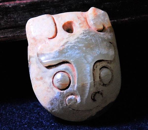 本件的眉眼鼻頭的雕琢風格與戰漢時期的螭虎一致,但卻未雕琢嘴牙,且下巴修圓,顯得一副憨厚可愛的樣子,與戰漢當時的螭虎力求兇猛的視覺感完全不同,著實讓wake覺得奇怪。後來一想,戰漢時期對於神怪鬼魅之說是非常興盛的,這八成是給小小貴族貼身掛在胸前的避邪之物,就像現代小孩滿月、滿周歲時親戚長輩會送給小小孩一些金鎖、玉鎖、小神像,掛在胸前保佑小小孩平安長大一樣意思吧?