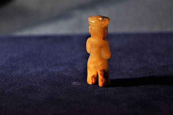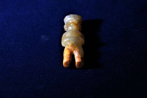 高古玉人時有見到在頸部左右對穿孔洞,有時是在頸後或背後做牛鼻穿,可能均是為了配掛在胸前,希望這神祖或巫覡的玉像能面向前方,為佩帶的人破除前方的邪祟,保佑平安吧?