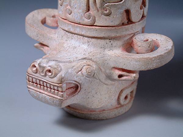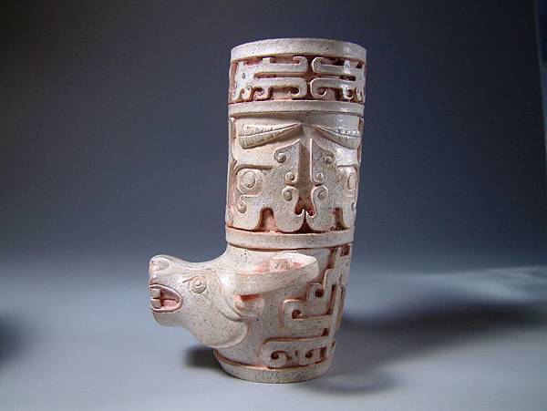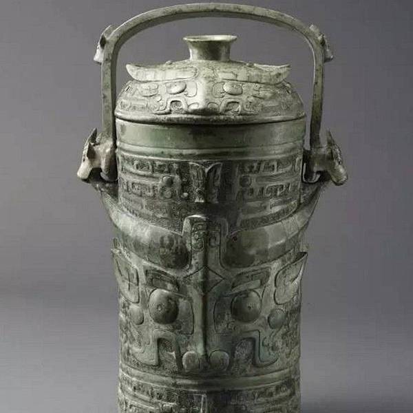 各位見多識廣的格友是否有「似曾相識」的感覺?上海博物館藏的西周「古父巳卣」其中段之紋飾與本器的中段與上段的紋飾極為近似。商與西周前期常用的青銅器的酒器分為「溫酒器」、「盛酒器」、「飲酒器」三類,「古父巳卣」為「盛酒器」,而本器為祭祀時神明用的「飲酒器」。