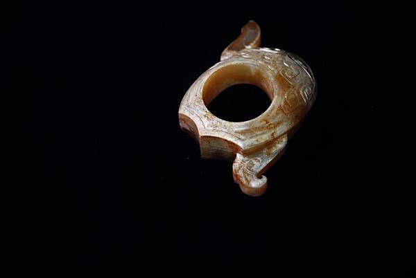 本件是明確的韘形珮(但wake仍認為這珮形與商周的短羽紋有關係),雕工精美,紋飾莊嚴卻又透著變化轉折,或許本件的原主是個很有見地、威望很高的戰國後期諸侯?