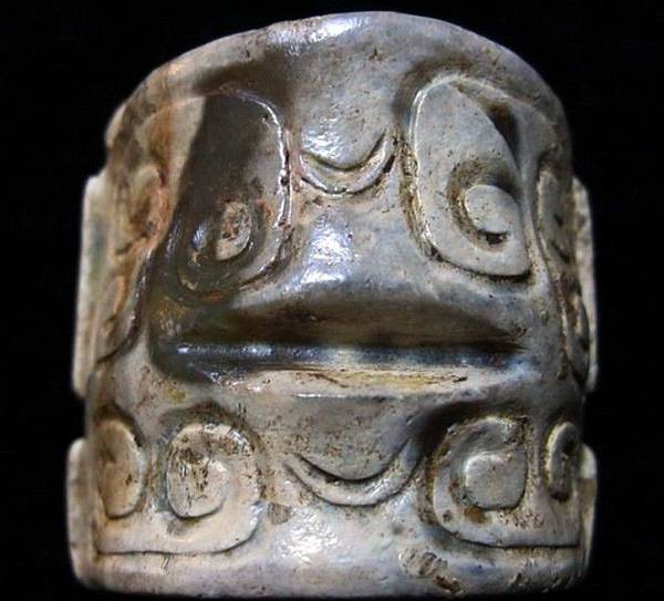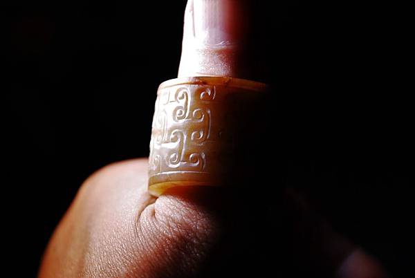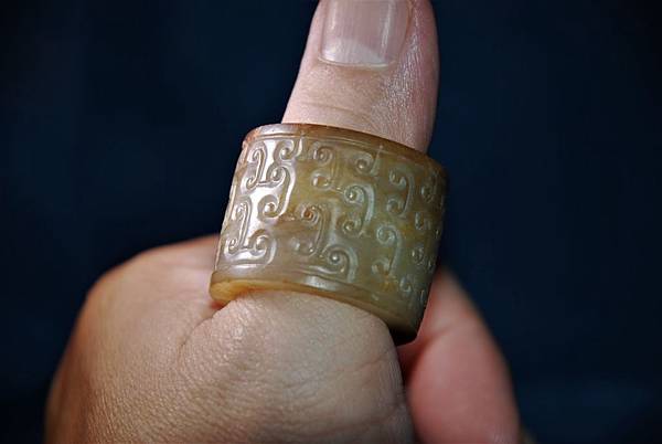 直到後來套在手指上,發現非常合手,毫無碦手的不適,才突然發現這是不是戰漢時期的韘?尤其是看到商周多種形態、紋飾的筒狀玉韘,讓我認為這些合手指、內壁打磨平滑的筒狀玉器,可能都是扳指。