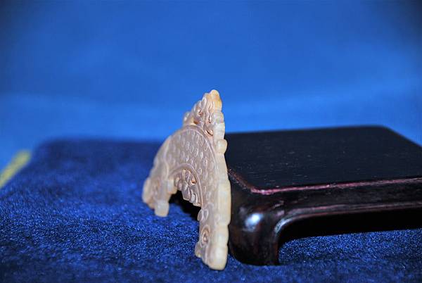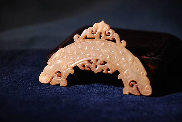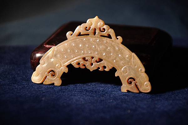 本件約為戰國中期中原諸侯大國治玉的風格,如果是楚國製作的,會必較瑰麗多彩些、銳利些,且八成會在龍頭臉頰空白處用細陰線琢出仙花紋,以標示其為楚國製玉。此種組珮最上端牽頭的珩,在戰國中期已達組珮發展的後期,漸漸地珩會退出中國玉文化的舞台,配飾玉器的型制製作會更為開放,也慢慢擺脫了對稱、均衡的桎梏,為多采多姿、靈動、多視角表現的漢代玉器,鋪陳了發揮的審美條件。