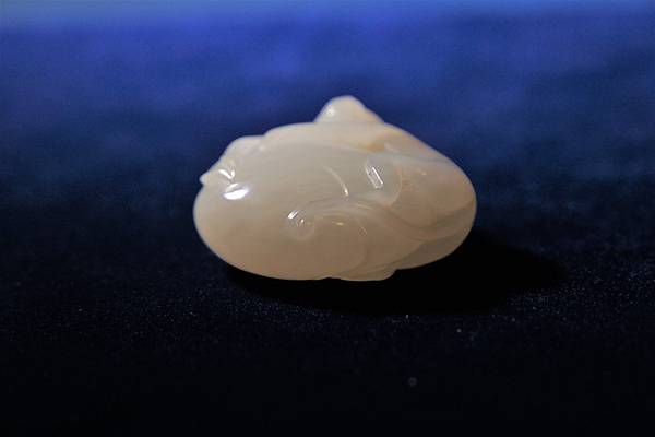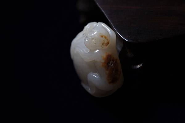 本件玉理可見水波紋,在仔兒玉中並不是很好的玉質,但比一般和闐白玉還是堅硬些。這種玉質的原石,大約是在玉河中下段拾獲的仔兒玉。